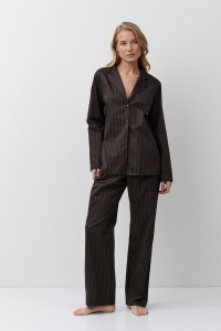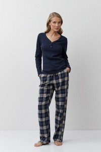 Пижама женская со штанами LUCIE для вашего ночного комфорта. Пижама выполнена из приятной к телу ткани. Лонгслив с длинными рукавами, вырез горловины с планкой на пуговицах. Штаны свободные, с эластичным поясом с завязкой и двумя боковыми карманами. Расслабьтесь с максимальным комфортом и стилем в пижаме LUCIE. Состав: верх 62% хлопок, 33% полиэстер, 5% эластан; низ 100% хлопок.