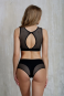 Спортивный топ push-up из эластичной сетки. Полупоролоновые чашки на каркасах со съемными вкладышами. Декоративный вырез на груди подчеркивает линию декольте.
