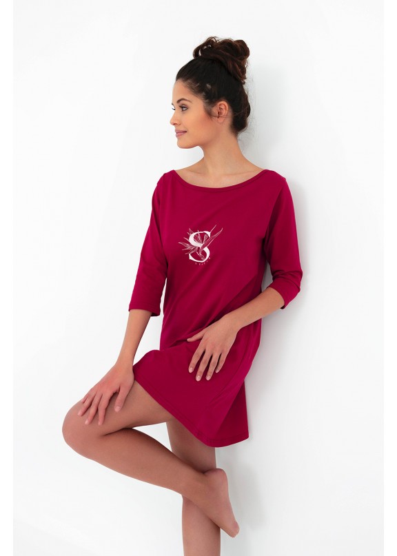 Сорочка Sarah с принтом. Рукава 3/4. Свободный силуэт и длина чуть выше колен. Идеальный вариант для комфортного отдыха дома.