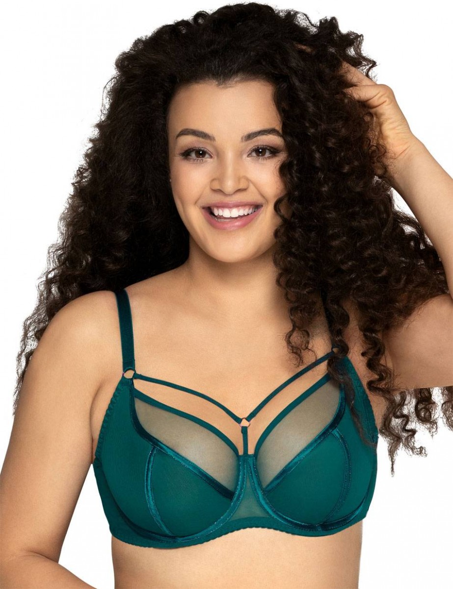 На каркасах. Чашка сшивная, с тройным диагональным членением. Нижняя деталь выполнена из двойного слоя эластичного сетчатого полотна, верхняя деталь - из полупрозрачной сеточки. Пояс выполнен из эластичного сетчатого полотна на подкладке из стабилизирующей сеточки, без боковых косточек. Бретели несъемные, регулируемые по всей длине.