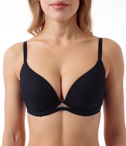 Бюстгальтер с формованной чашкой и встроенным пуш-ап на каркасе. Выполнен из матовой шелковистой микрофибры. Бюстгальтер конструкции push-up сдвигает и приподнимает грудь, зрительно увеличивая ее форму.