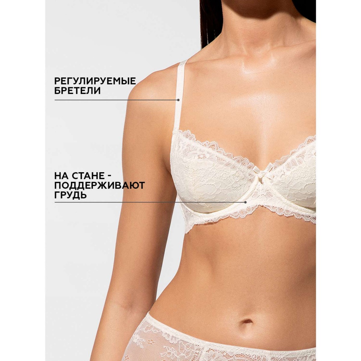 Очаровательный открытый кружевной бюстгальтер с мягкой чашкой. Изнутри чашки продублированны поролоном. Между чашками расположен небольшой атласный бантик.