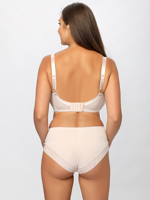 Роскошный полумягкий бюстгальтер. Он превосходно собирает грудь с боков, выносит её вперед, в центр. Бюстгальтер делает грудь округлой, вне зависимости от ее природной формы. При этом не лишает вас комфорта. Чашка сшита из эластичной ткани с дорогим шелковым отливом и рельефными ромбами. Эластичное кружево подстраивается под форму, не перетягивает, мягко удерживает бюст.