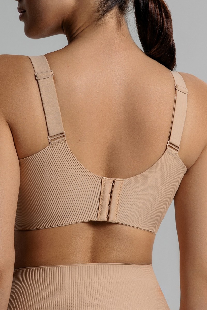 Бесшовный бюстгалтер с V-образным вырезом из микрофибры в рубчик. Силиконовые вставки создают дополнительную поддержку груди. В комплекте съемные латексные вкладыши. Широкая спинка в форме леотард. Комфортные бретели исключают натирание и сдавливание плеч.