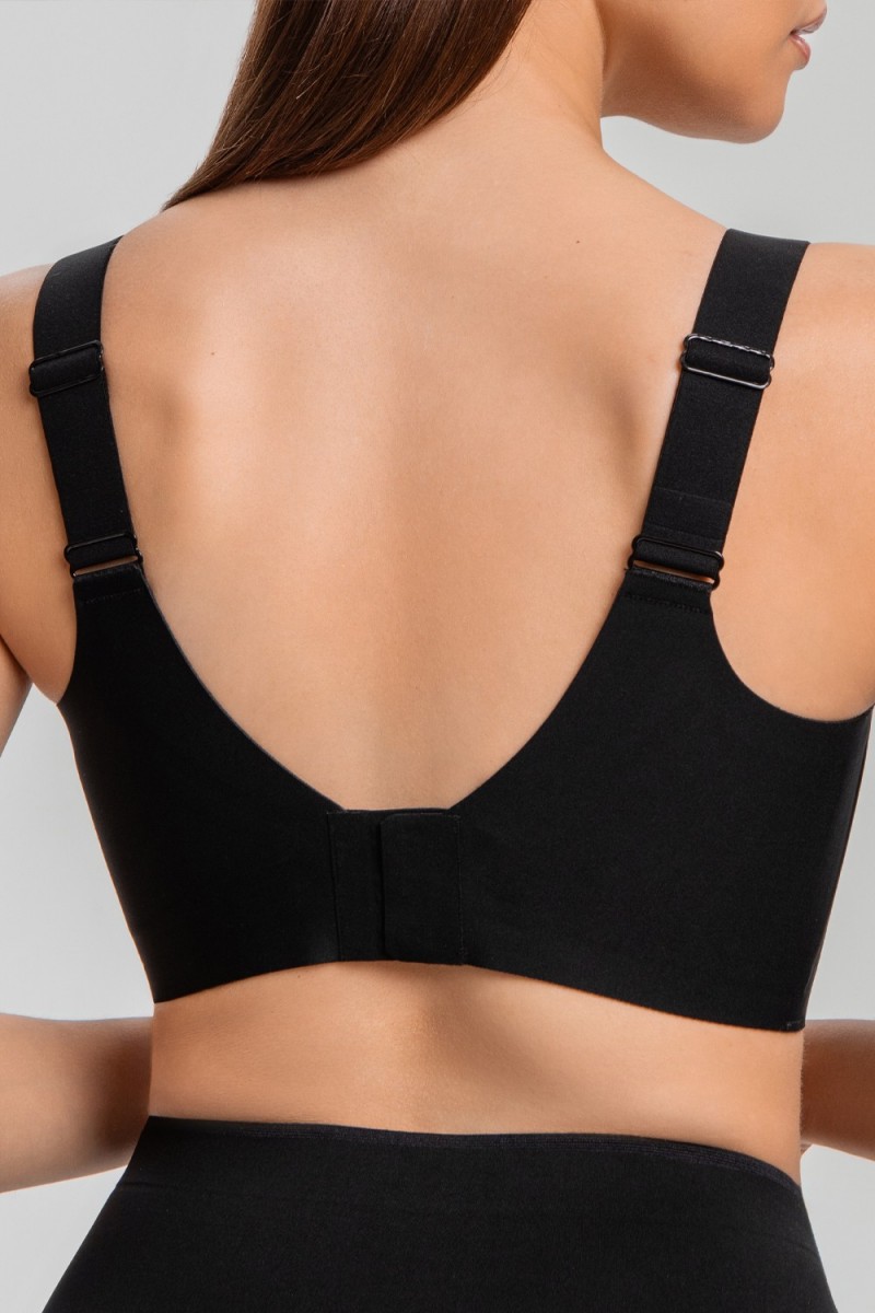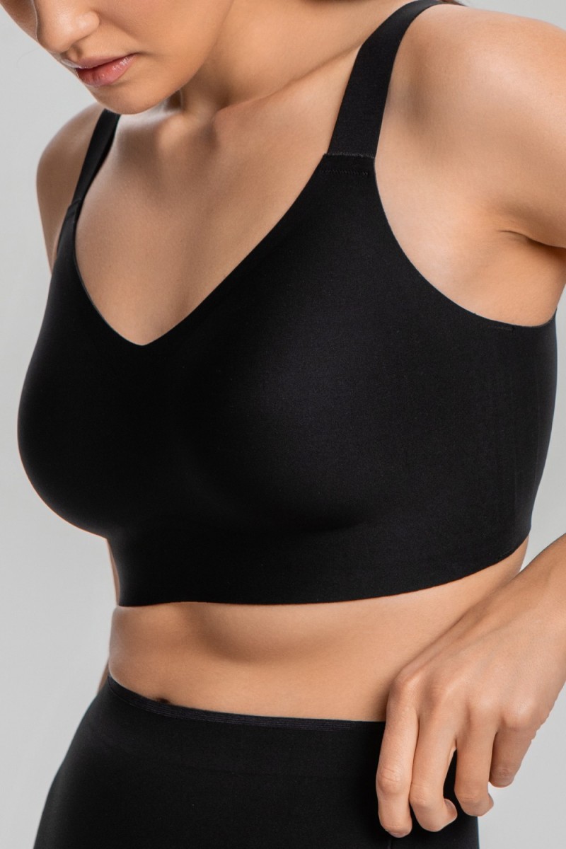 Бесшовный бюстгальтер с V-образным вырезом из микрофибры. Силиконовые вставки создают дополнительную поддержку груди.