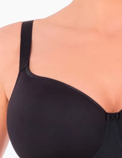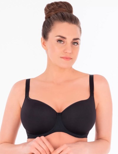 Ультралегкий спейсер без кружева от белорусской марки Sermija модель 169-16-L / 170-16-L из коллекции WOMEN TODAY черного цвета, с дышащими формованными чашками. Бесшовные гладкие чашки нового поколения легко восстанавливают форму после механического воздействия, не выделяются из-под одежды. Конструкция обеспечивает стабильную поддержку груди и комфорт в течение всего дня, удобен под летние футболки.
