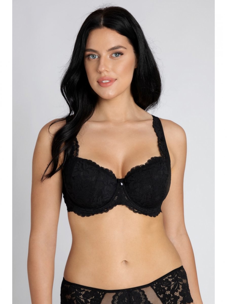Чашка выполнена из тонкого сшивного поролона, покрытого сверху цветочным кружевом. Прекрасно собирает грудь и создает легкий эффект push up. Декоративная подвеска с кристаллами дополнит Ваш нежный образ!
