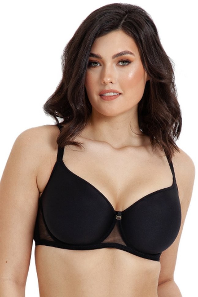 Ультратонкий дышащий и легкий спейсер от европейского производителя Subtille. Мягкая удобная чашка на кости с внутренней микросеткой сбоку, для поддержки и формирования груди. Стан выполнен из эластичной микрофибры без боковых косточек. Трехрядная застежка на спинке. Несъемные регулируемые по длине бретели. Вокруг чашек бюст декорирован прозрачной сеткой, благодаря чему выглядит очень сексуально и не перегружено. На стыке чашек есть декор из золотой застежки, так же он может выполнять функцию крючка для любых съемных деколет бретелей в зоне декольте.