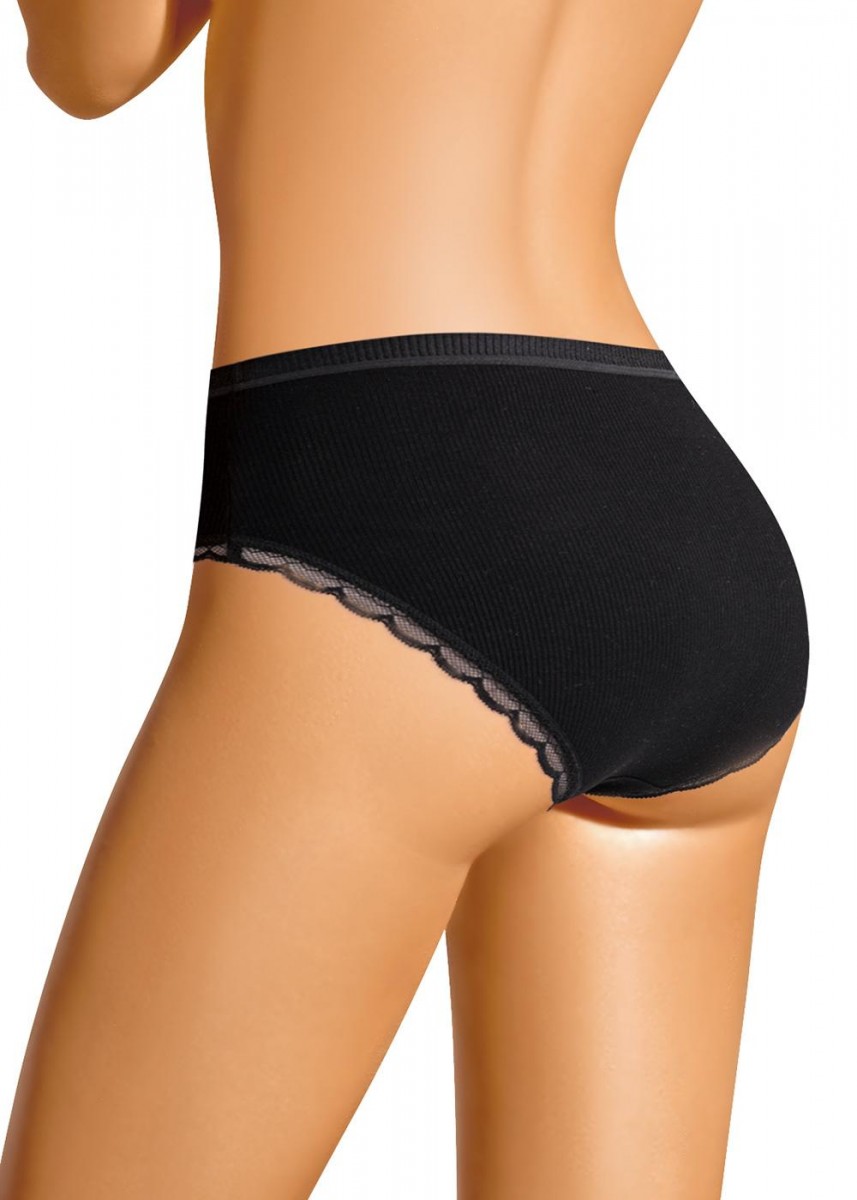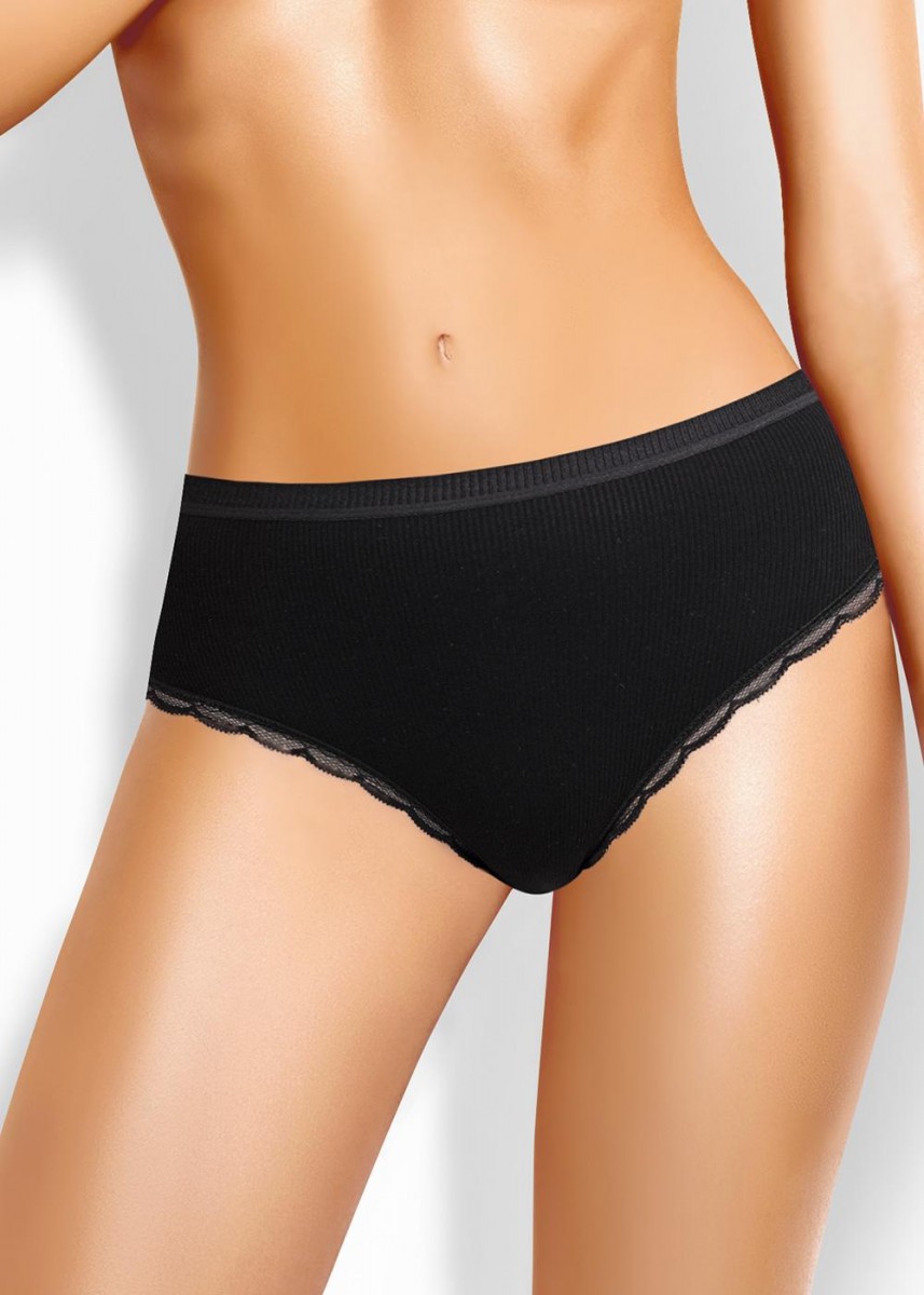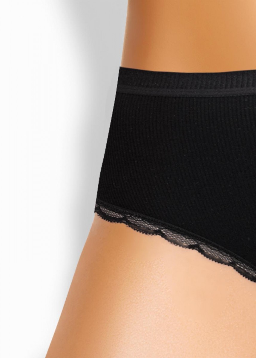 Трусы слипы-макси женские из эластичного вискозного полотна -кашкорсе лапша. Обработка краев по талии - жаккардовая резинка, по ноге - узкое кружево.