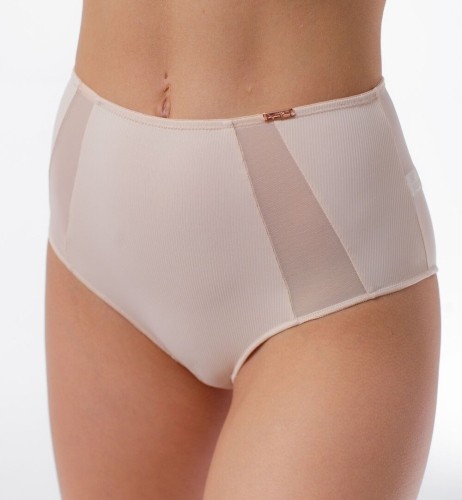 Трусы-макси с высокой линией талии, выполнены из матовой шелковистой микрофибры. Задняя часть выполнена из эластичной сетки. Плоские швы.