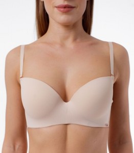 Бюстгальтер с формованными чашками из тонкого поролона со скрытыми каркасами. Выполнен из матовой шелковистой микрофибры. По бокам вертикальные пластины упругости.