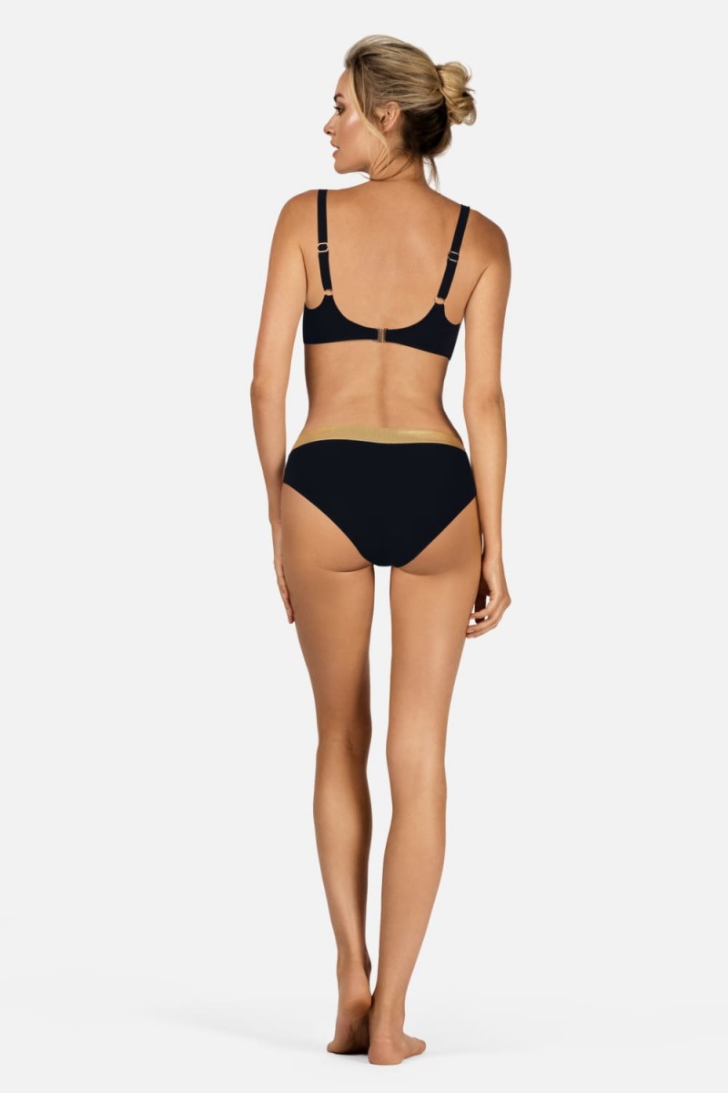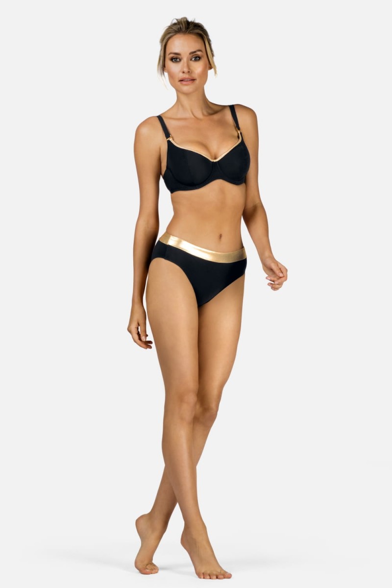 Купальные женские плавки со средней посадкой. По верхнему краю окантовка золотистого цвета. Продаются только вместе с купальным верхом из коллекции Feba F105.