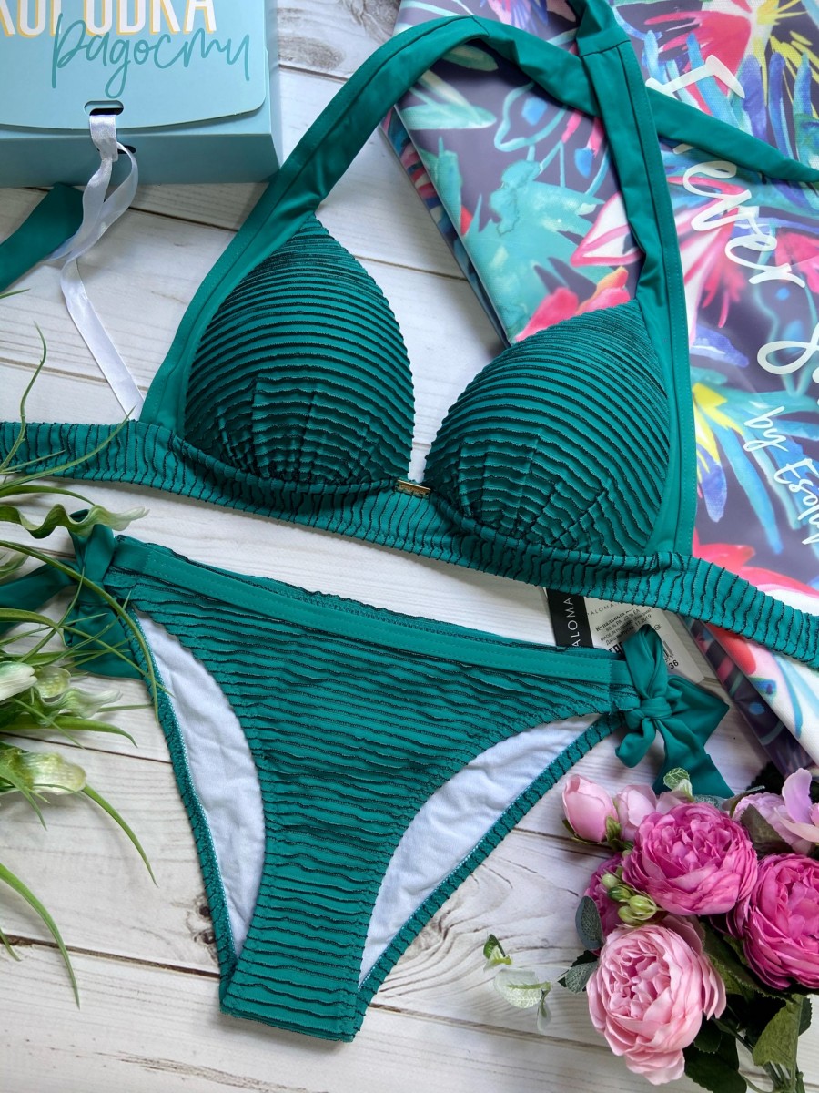 Купальник с очень хорошей посадкой потрясающей зеленой расцветки