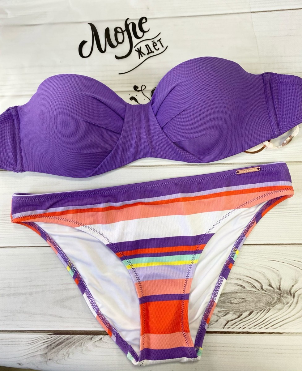 Раздельный купальник типа бандо 81607 от европейского производителя Ysabel Mora. Поролоновая чашка на кости со встроенным эфеектом push up. Съемные регулируемые бретели, застежка на спине. Трусы бикини классической посадки. Микропиковая ткань.