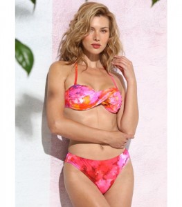 Яркий купальник от румынского бренда Jolidon модель FR223 выполнен из из быстросохнущего эластичного полотна в красивой расцветке из красно-оранжевой гаммы цветов сочетающихся в абстрактном узоре.