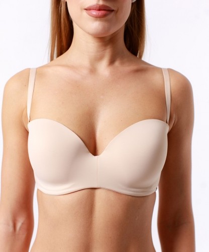 Бюстгальтер с формованными чашками на поролоне и на каркасах. Выполнен из матовой шелковистой микрофибры. Бюстгальтер позволяет зрительно увеличить объём и округлить грудь.