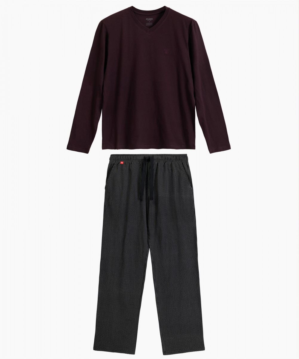 Мужская пижама Atlantic в цвете баклажан и черный из коллекции Homewear создана для максимального комфорта во время отдыха и сна. Коллекция Homewear польского бренда Atlantic - это мужская одежда для домашнего отдыха и сна, которая представлена как готовыми пижамными комплектами (мужские пижамы с брюками и лонгсливом с длинным рукавом, со штанами и футболкой с коротким рукавом, с шортами и футболкой), так и отдельными предметами одежды для дома, которые можно сочетать между собой на свой вкус (пижамные брюки, шорты и футболки самых разных фасонов и расцветок).
