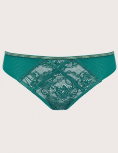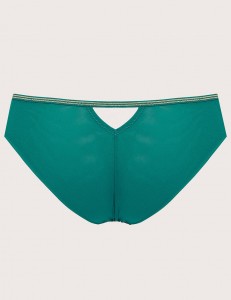 Трусики бразилиана из коллекции Alles CHIARA GOLD в модном бирюзово-зеленом цвете — ваш ежедневный must-have для комфорта и утонченности! Нежное кружево и эластичная сеточка спереди обеспечивают идеальную посадку и легкость в движении. Золотая люрексовая нить добавляет изысканный блеск — будьте готовы к комплиментам! Идеальны для активного дня или вечера.